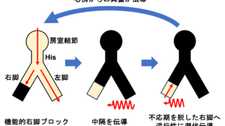 心房粗動は心房拍数240〜440拍/分の規則的波形を有するマクロリエントリー性頻拍です。マクロは「大きな」を意味しており、一般的には右房内の三尖弁の周囲を大きなリエントリー回路として興奮が旋...